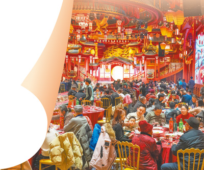 安徽芜湖市繁昌区一家酒店内,顾客们在吃年夜饭。 |